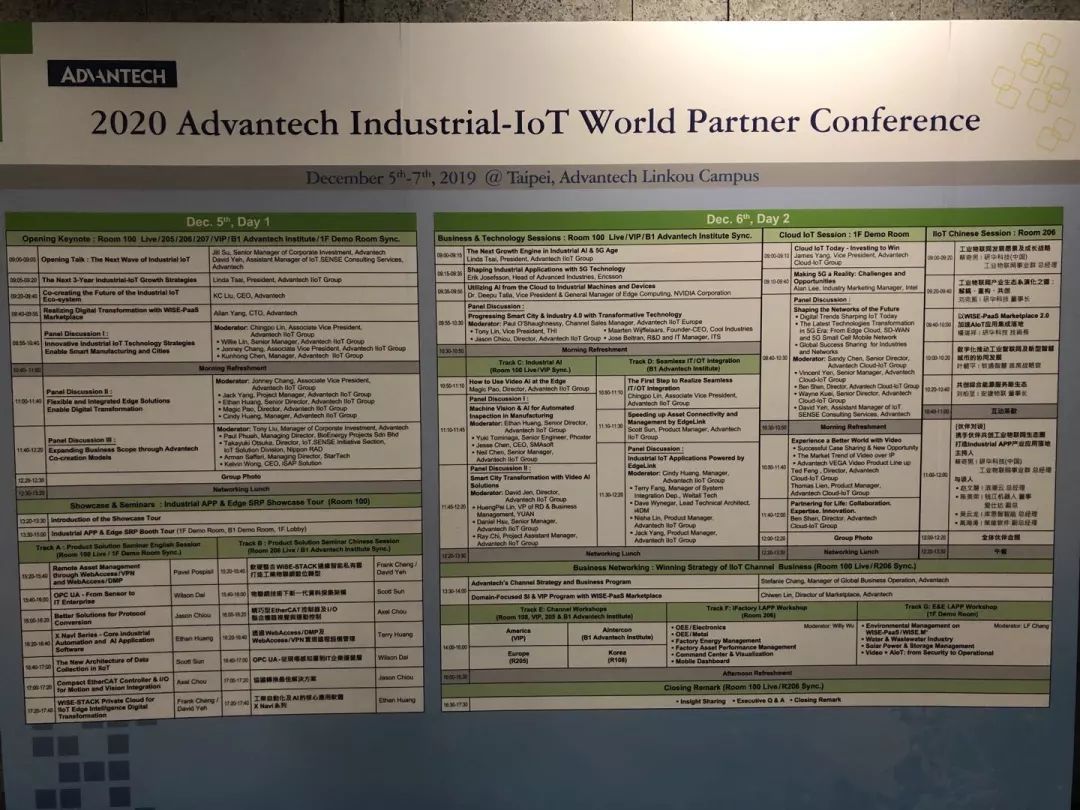 2019年12月5日,研华于台湾林口物联网园区举办为期两天的工业物联网全球伙伴会议,这是继去年底于苏州举办物联网共创峰会后的首场大型伙伴会议。